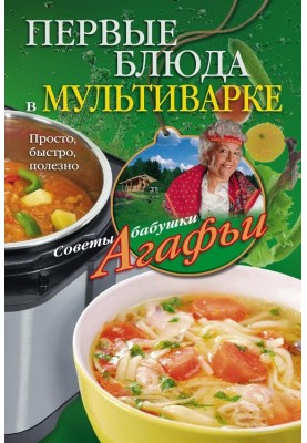 In her new book, our progressive grandmother Agafya has collected the best recipes for first courses that can be prepared in a slow cooker. To prepare soups in this miracle of technology, you do not need oil or other fat; vegetables can be steamed and soups can be simmered. All this is very useful for adults and children. All prepared dishes can remain heated for a long time or, conversely, can be cooked at a delayed time, so that you do not have to eat the reheated product. The “smart machine” frees up your time and prepares delicious and healthy meals, and in the meantime you can do something pleasant and interesting. Bon appetit!