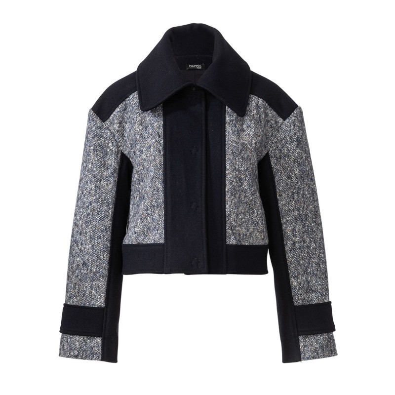 шерстяний креп 1,20 м завширшки 140 см для всіх розмірів; клапоть підкладкової тканини для мішковини кишень розміром бл. 30 х 50 см; флізелін G 785; 1 потайна застібка-блискавка завдовжки 12-12-12-14-14 см; 1 пробивна застібка-гачок; 1 плаский ґудзик для внутрішньої застібки.