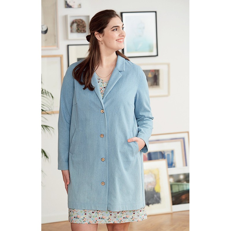 поліестерова тканина з еластаном 0,95 м шириною 140 см для всіх розмірів; флізелін G 785; 1 потайна застібка-блискавка довжиною 22 см і спеціальна лапка швацької машини для її пришивання; 4 ґудзики.