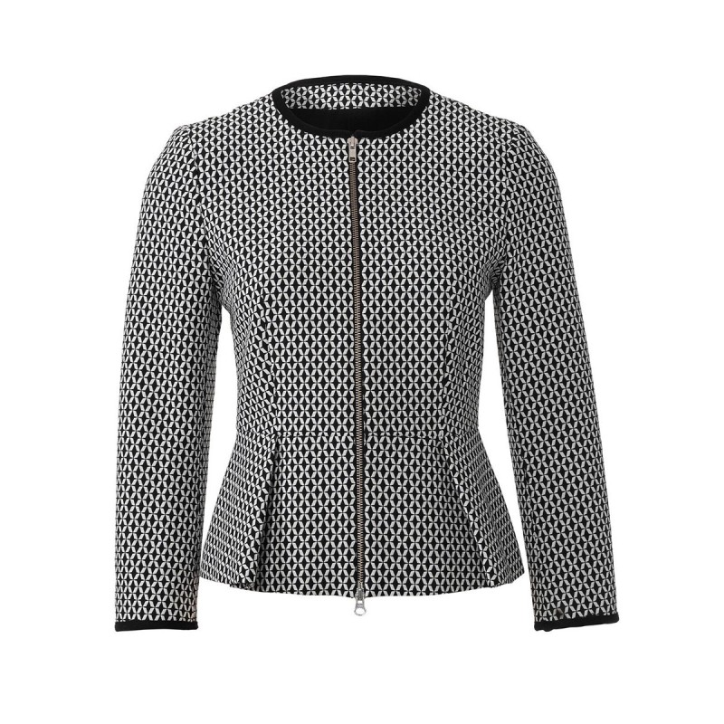 атлас з принтом 2,55-2,55-2,55-2,55-2,60 м шириною 140 см; підкладкова тканина 1,55 м шириною 140 см для всіх розмірів; флізелін G 785; 1 потайна застібка-блискавка довжиною 60 см і спеціальна лапка швацької машини для її пришивання; 6 обтягнених ґудзиків.