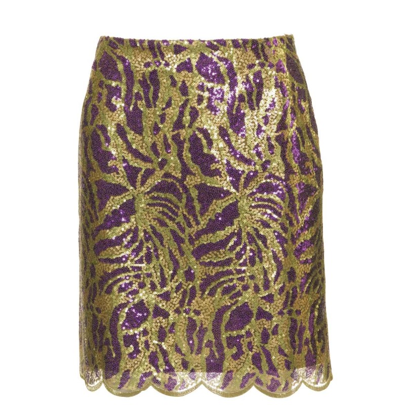 У приталеного жакета з сяючими смугами відсутня застібка - її замінює пояс, що зав'язується.