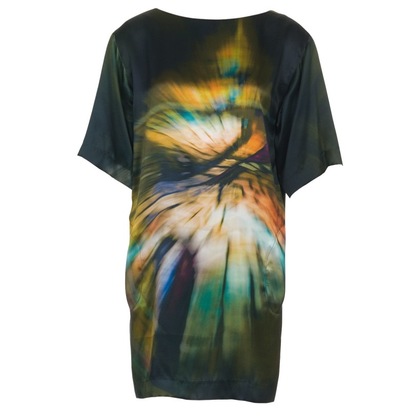 Зовсім скромна спереду, а ззаду вельми спокуслива! Пряма блуза з рукавами 3/4 і поясом по нижньому краю демонструє із зворотного боку декольте зі складками.