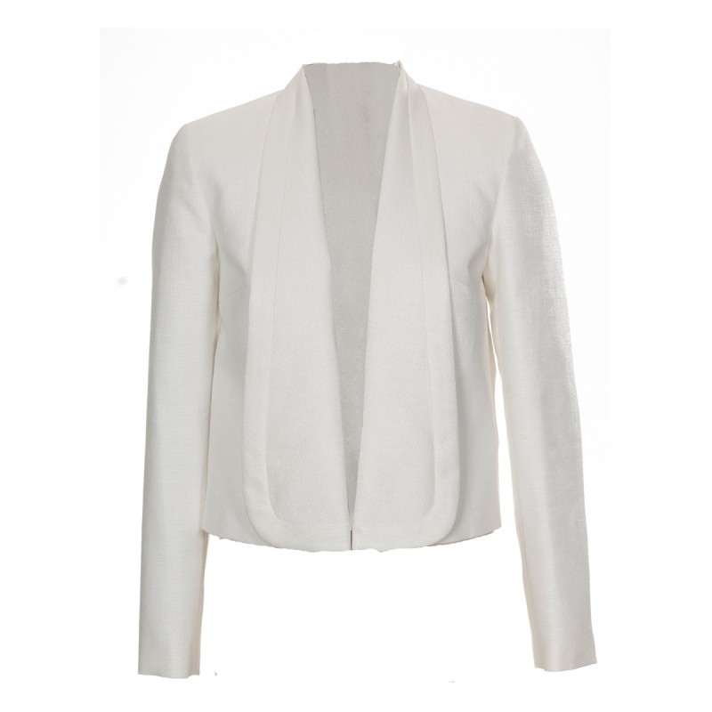 Великий комір-хомут, який добре тягнеться, дозволяє носити цей пуловер із призбореними знизу екстрадовгими рукавами ще в двох варіаціях: з вирізом кармен, як на фото, і на одне плече.