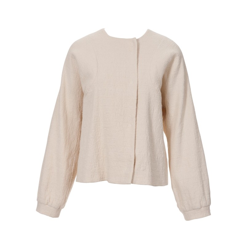 жате лляне полотно з тіньовим ефектом («омбре») у смугу 2,50 м шириною 150 см (величина рапорту смуги 125 см) для всіх розмірів; флізелін G 785; 1 потайна застібка-блискавка довжиною 60 см і спеціальна лапка для її пришивання.