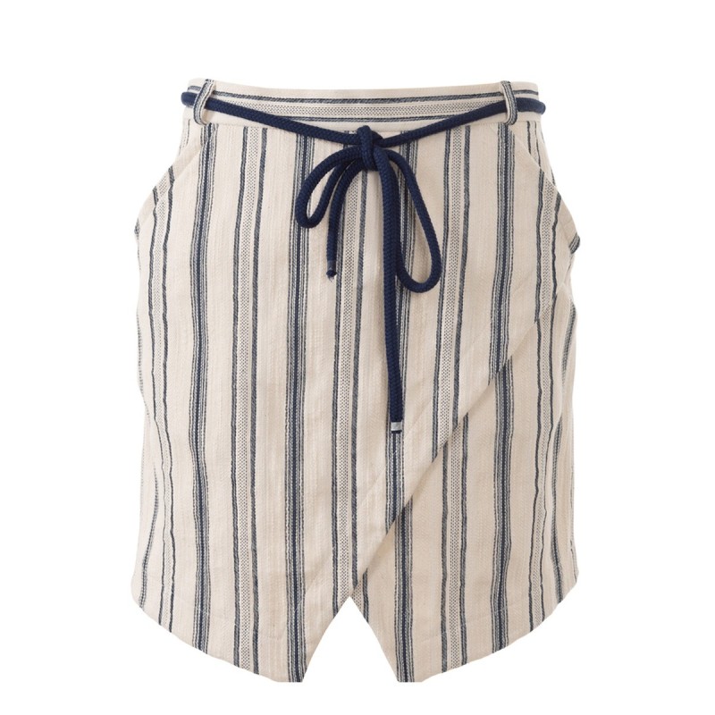 подвійний креп 2,00 м шириною 140 см для всіх розмірів; підкладкова тканина 0,30 м шириною 140 см; флізелін Н 410; еластична стрічка 1,30-1,35-1,45-1,50-1,60 м шириною 1,5 см; 1 потайна застібка-блискавка довжиною 22 см і спеціальна лапка швацької машини для її пришивання.